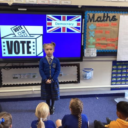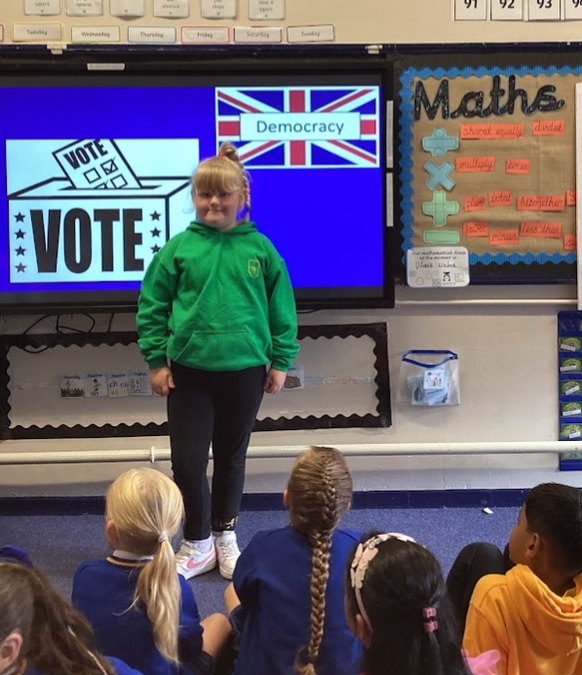 In each class from Year 1-6, the children have to speak openly about why they would make a great school councillor. (September 2023)