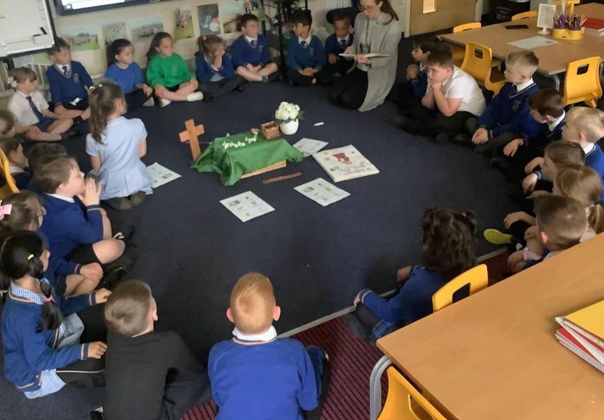 Celebration of the Word is a very frequent act of worship throughout the school. The children a very much empowered to lead the celebration of the word at an age -appropriate level. They may take place in the classroom, the school chapel and also outside in God's creation.